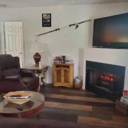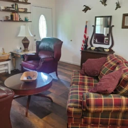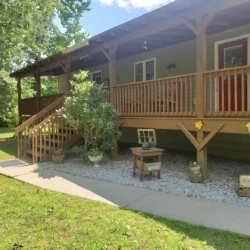 Welcome to The River Gem! Amazing Riverfront cabin loaded with everything needed for a Fantastic stay. This place is a Fisher mans dream and a travelers Delight. Sit by the river and watch all your troubles float away. Spacious and very comfy. Large loaded kitchen and dining area. Gorgeous new flooring. 3 King size beds/2 full baths. Large yard and green country all around you. Huge porch with rockers. Fishing deck, covered outdoor dining area. Easy access. You will never want to leave.