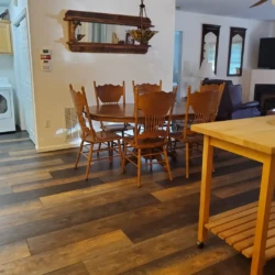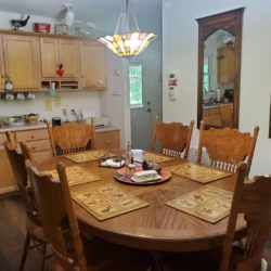 Large and Spacious. Open floor plan. Huge porch with rockers overlooking the river. Beautiful grounds. Large dining area. 3 King beds.