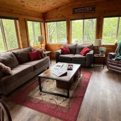 Ruby River is a warm and inviting Country cabin with a modern vibe. The Great Room is such a lovely area to unwind, connect with family or just watch the river mosey on by. The River Views are Priceless! The adjustable daybed is a wonderful place to sit a spell, read or enjoy a little carefree nap. Enjoy the Firepit for smores and star gazing! The scenery is breathtaking and changes with every season. Wild life sightings and beautiful blue birds can grace the day. High Speed Internet throughout. Private work Space added. Awesome Cabin to make lifelong memories!